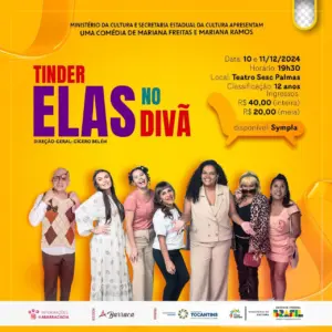 A estreia é fruto do projeto Montagem e Desenvolvimento do espetáculo teatral TinderElas no Divã, da Companhia A Barraca, aprovado no edital Artes Tocantins, da Lei Paulo Gustavo (LPG), via Ministério da Cultura e Secretaria Estadual da Cultura.