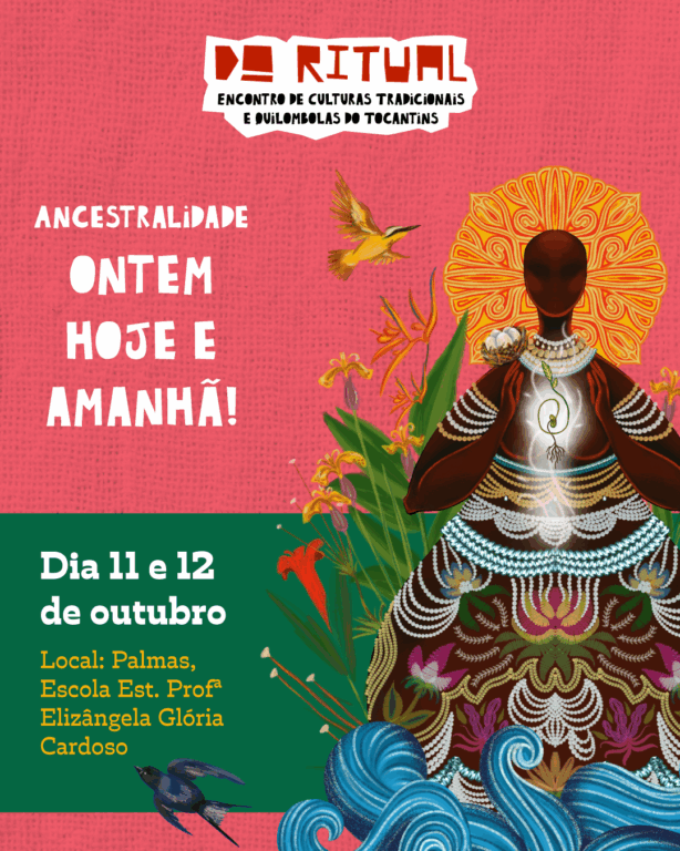 O Do Ritual – Encontro de Culturas Tradicionais e Quilombolas do Tocantins acontece nos dias 11 e 12 de outubro, na Escola Estadual de Tempo Integral Profª Elizângela Glória Cardoso, localizada na 401 Sul, de frente para a Havan, em Palmas. Com entrada gratuita e classificação livre, o evento celebra o tema “Ancestralidade: Ontem, Hoje e Amanhã” e acontece das 8h às 19h no sábado e das 9h às 14h no domingo, com programação cultural voltada à valorização das raízes e saberes do povo tocantinense.