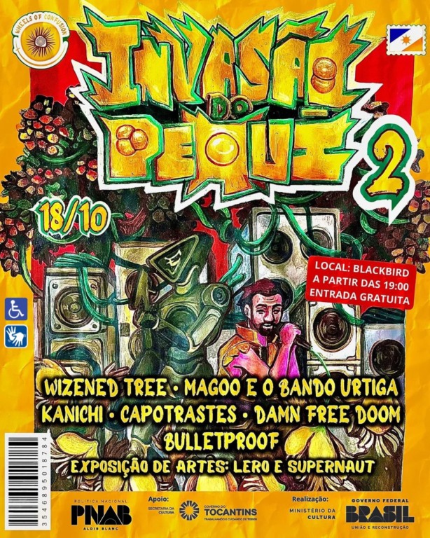 O destaque da programação é o lançamento da coletânea “Invasão do Pequi 2025”, uma produção do selo Wheels of Confusion Records que reúne seis bandas tocantinenses reinterpretando obras umas das outras, um conceito inédito no Estado. Este é um projeto realizado com recursos da Política Nacional Aldir Blanc/PAAR 2024, com recursos do Ministério da Cultura operacionalizados pela Secretaria da Cultura do Tocantins.