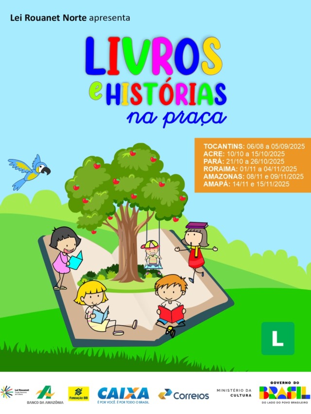 Entre os dias 6 de setembro e 5 de outubro de 2025, sempre às 17h, as praças e parques de Palmas serão palco do projeto “Livros e Histórias na Praça”, iniciativa que promove o acesso gratuito à leitura literária e valoriza a tradição da narrativa oral.