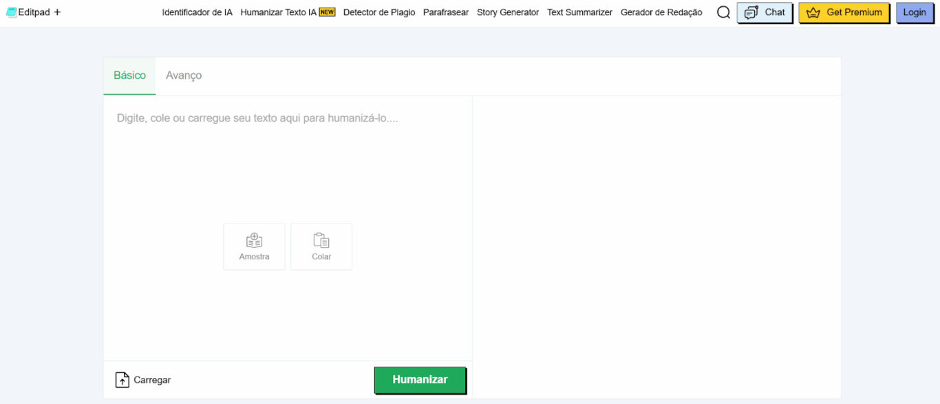 O Humanizador de IA do Editpad é outra ferramenta muito útil para estudantes no Brasil. Ele os ajuda a produzir textos robóticos ou técnicos,mais natural e amigável ao ser humano.