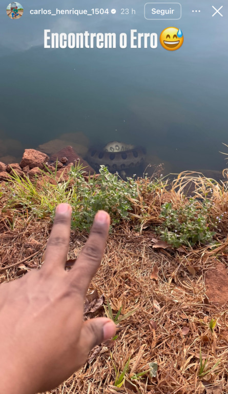 O registro impressiona pelo tamanho do animal, que aparece submerso, próximo à margem. O próprio autor do vídeo brincou nos stories: “Bora pescar ali, o lugar é tranquilo kkkk”, mostrando a serpente logo em seguida.