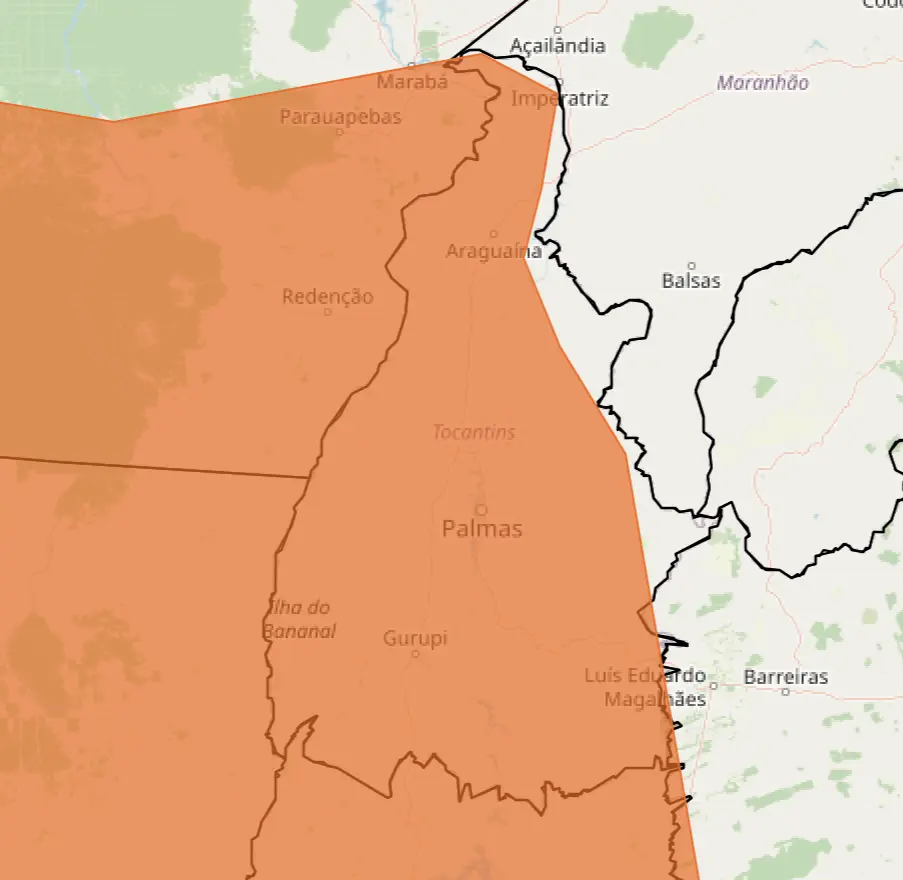 O Instituto Nacional de Meteorologia (INMET) publicou um alerta de perigo para chuvas intensas no Tocantins, com início às 13h do dia 07 de novembro e previsão de término às 10h do dia 08 de novembro de 2024. O aviso prevê chuvas entre 30 e 60 mm/h, ou de 50 a 100 mm em um dia, acompanhadas de ventos intensos que podem atingir velocidades de 60 a 100 km/h. Dada a severidade do fenômeno, há riscos significativos, incluindo a possibilidade de cortes de energia, quedas de galhos e árvores, alagamentos e descargas elétricas.