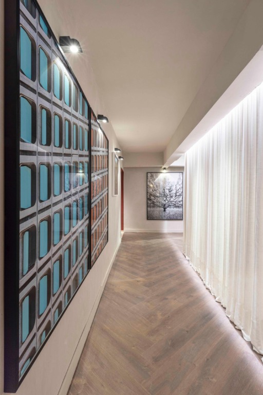 Bancos de madeira com linhas orgânicas convidam à contemplação, enquanto as fotografias autorais e inéditas de Celso Junior dialogam com a atmosfera do bioma. Parte das obras pertence à série Concretus, curada especialmente para este projeto, que representa a fusão entre o concreto e o sonho — entre a rigidez arquitetônica e a sensibilidade que construiu a trajetória de Eliene em Brasília. A série não apenas evoca a materialidade da cidade, mas também celebra a importância da arquitetura como cenário, inspiração e base de sua jornada profissional na capital.
