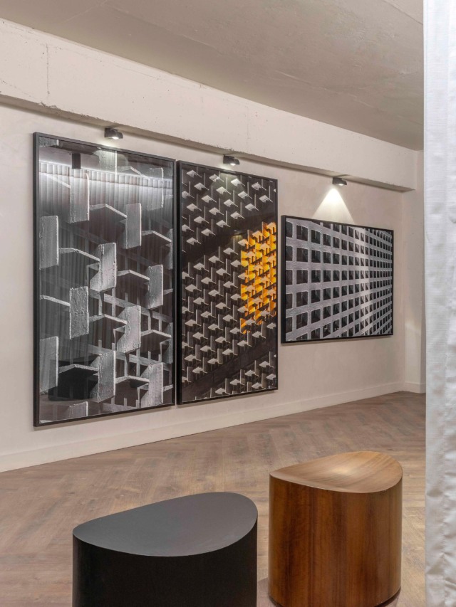 Bancos de madeira com linhas orgânicas convidam à contemplação, enquanto as fotografias autorais e inéditas de Celso Junior dialogam com a atmosfera do bioma. Parte das obras pertence à série Concretus, curada especialmente para este projeto, que representa a fusão entre o concreto e o sonho — entre a rigidez arquitetônica e a sensibilidade que construiu a trajetória de Eliene em Brasília. A série não apenas evoca a materialidade da cidade, mas também celebra a importância da arquitetura como cenário, inspiração e base de sua jornada profissional na capital.
