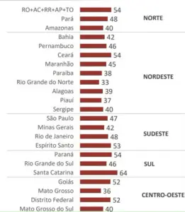 A exceção são os estados de Rondônia, Acre, Roraima, Amapá e Tocantins, cujos resultados foram lidos de forma conjunta.