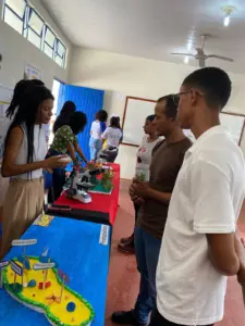 Nesta sexta-feira, 29, o Colégio Estadual Alfredo Nasser, em Porto Alegre do Tocantins, realizou a culminância da BioBlitz “A Ciência no Dia-a-Dia”. O evento contou com a participação de estudantes e a comunidade local, que tiveram a oportunidade de explorar, aprender e demonstrar conceitos científicos de maneira prática e envolvente. A feira teve como objetivo, estimular o pensamento crítico, a criatividade e o trabalho em equipe, além de desenvolver o interesse pela ciência e promover aprofundamento em temas científicos e sua aplicabilidade no cotidiano.