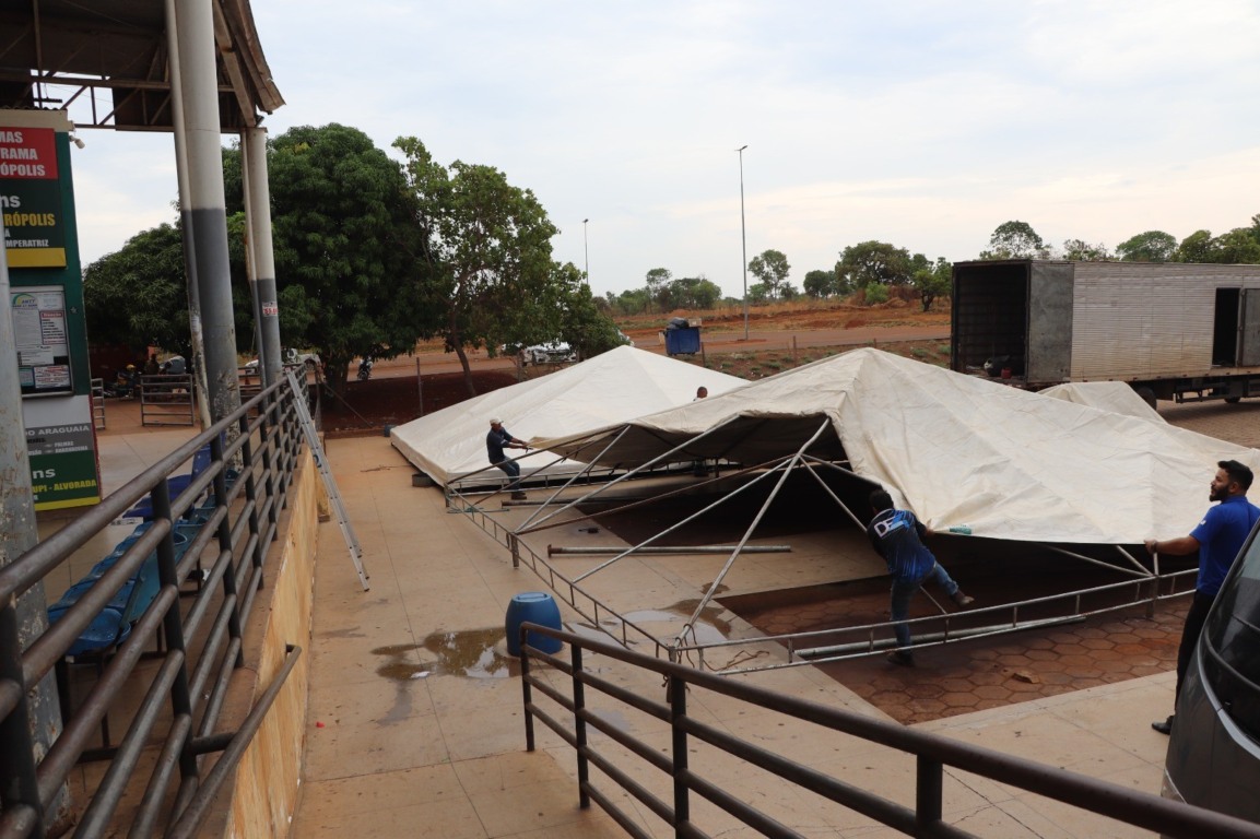Como ação imediata, o município instalou três tendas de 10×10 metros no local, garantindo abrigo e conforto aos passageiros durante o embarque e desembarque enquanto a estrutura definitiva ainda não foi construída.