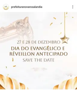 Além de ser uma celebração especial para os moradores, o evento pretende integrar o “Dia do Evangélico” à comemoração da virada do ano de forma antecipada. A Prefeitura ainda não divulgou detalhes sobre as atrações ou justificou oficialmente a mudança da data do réveillon.