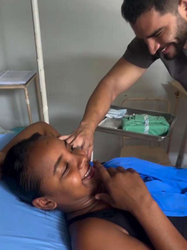 “Todo dia tem médico feio aqui. Aí o dia que meu sovaco tá só o cabelo… podia ser pior, né?”, brinca, enquanto mostra o profissional ao fundo.