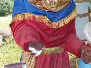 Estátuas e outros enfeites foram quebrados e as luzes e fiações foram furtadas. O Município não possui materiais para a substituição