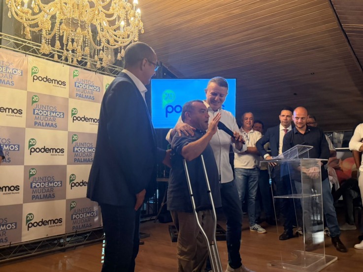 O pai do vereador Marcos Júnior, conhecido como Tatu, discursou no evento do Podemos de Eduardo Siqueira e disse que o filho vai disputar a estadual pela legenda.