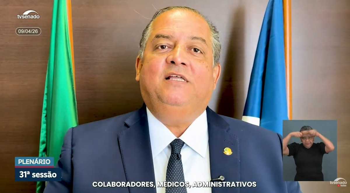 Em razão de agenda institucional em Palmas, o senador não esteve presente fisicamente na sessão, mas participou por meio de vídeo exibido no plenário. Na mensagem, Eduardo Gomes destacou a trajetória da instituição, o papel social do hospital e sua relevância regional.