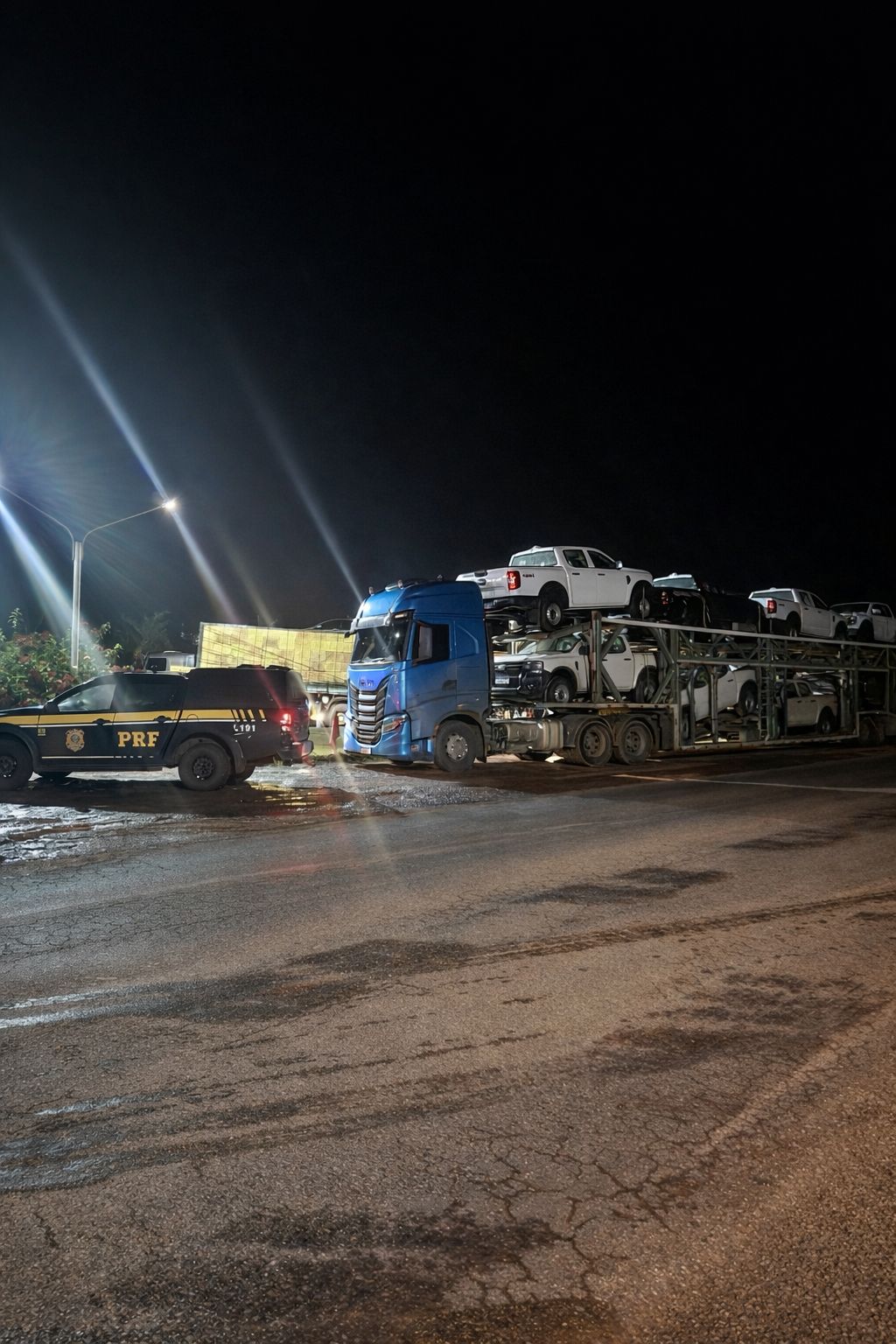 A ocorrência teve início após a PRF receber imagens que mostravam dois caminhões realizando manobras perigosas na rodovia, colocando em risco a segurança dos demais usuários da via. Diante das informações, equipes policiais iniciaram diligências para localizar os veículos envolvidos.