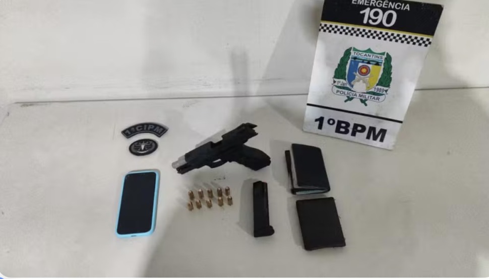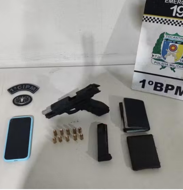 Durante a abordagem, os policiais encontraram uma pistola Taurus TH40 calibre 40 com 10 munições intactas. Os dois homens foram presos e levados para a 1ª Central de Flagrantes de Palmas.