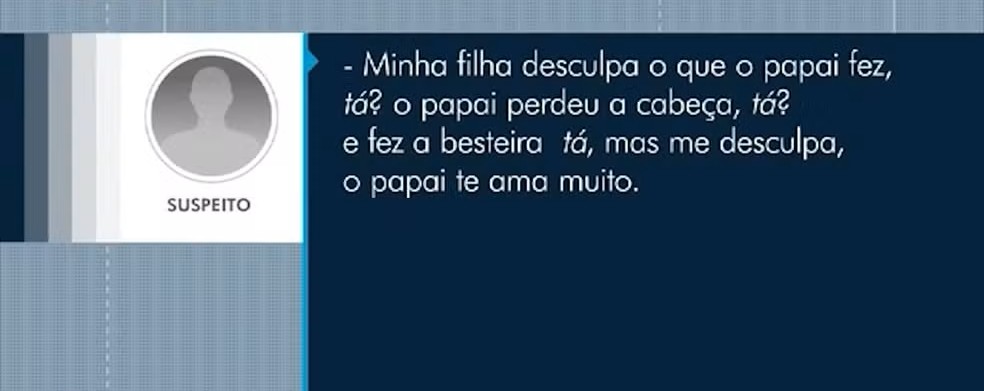 “Minha filha, desculpa o que o papai fez, tá? O papai perdeu a cabeça, tá? E fez besteira, mas me desculpa, o papai te ama muito.”