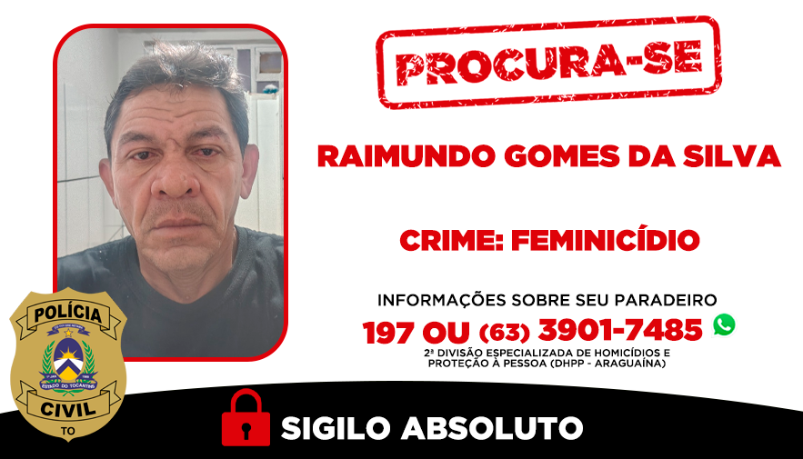 A Polícia Civil reforça que informações que possam ajudar na localização do foragido podem ser repassadas pelo telefone 197, pelo disque-denúncia da instituição, ou pelo WhatsApp da 2ª DHPP, no número (63) 3901-7485. O anonimato é garantido.