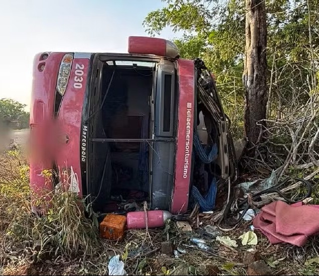 O acidente ocorreu por volta das 3h50. O veículo fazia a linha entre Teresina (PI) e Sinop (MT). Segundo a Polícia Militar, a principal suspeita é de que o motorista tenha perdido o controle do ônibus ao tentar fazer uma curva em alta velocidade. As causas serão apuradas pela perícia.