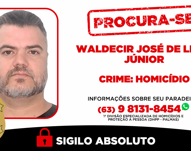 A Polícia Civil do Tocantins está à procura de Waldecir José de Lima Júnior, investigado pelo homicídio qualificado que vitimou Dhemis Augusto Santos, de 35 anos. O crime ocorreu no último sábado, 29, no estacionamento de uma galeria localizada na ARSO 21 (203 Sul), em Palmas. O indivíduo possui mandado de prisão em aberto, encontra-se foragido, está armado e apresenta elevado grau de periculosidade. As investigações estão sob responsabilidade da 1ª Divisão de Homicídios e Proteção à Pessoa (1ª DHPP – Palmas).
