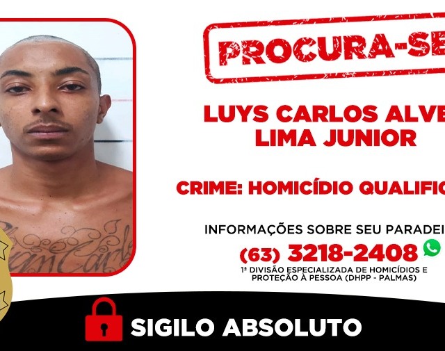 O segundo investigado, Luyz Carlos Alves Lima Júnior, 26 anos, continua foragido. Contra o homem há um mandado de prisão preventiva em aberto, expedido pelo Poder Judiciário da Comarca de Palmas, após representação da Polícia Civil. Informações sobre seu paradeiro podem ser repassadas à 1ª DHPP – Palmas, pelo telefone ou WhatsApp (63) 3218-2408. O sigilo é garantido.
