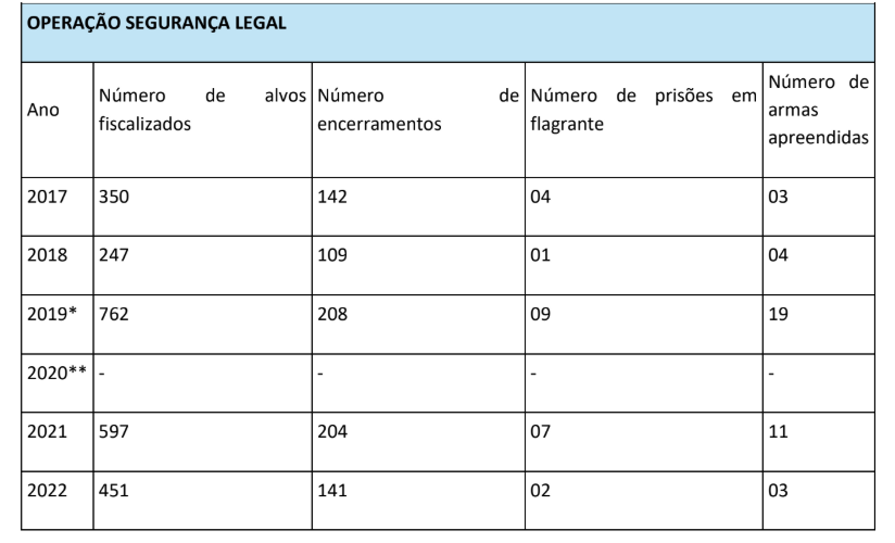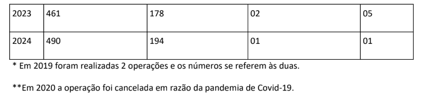 *Em 2019 foram realizadas 2 operações e os números se referem às duas.