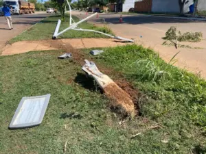 Motorista embriagado derrubou poste de iluminação com veículo da SPU — Foto: Matheus Dias/TV Anhanguera