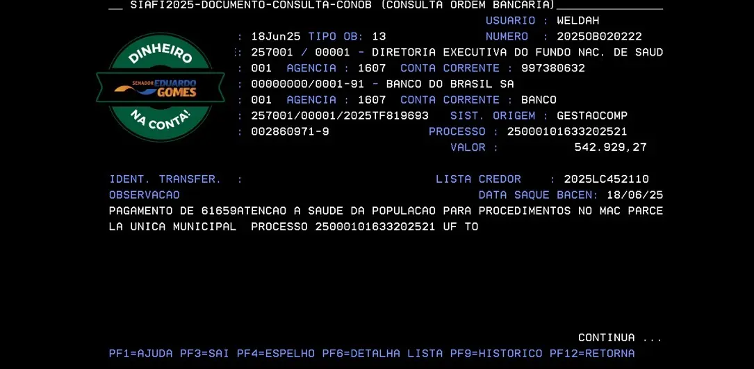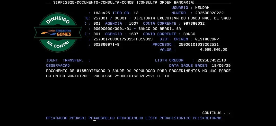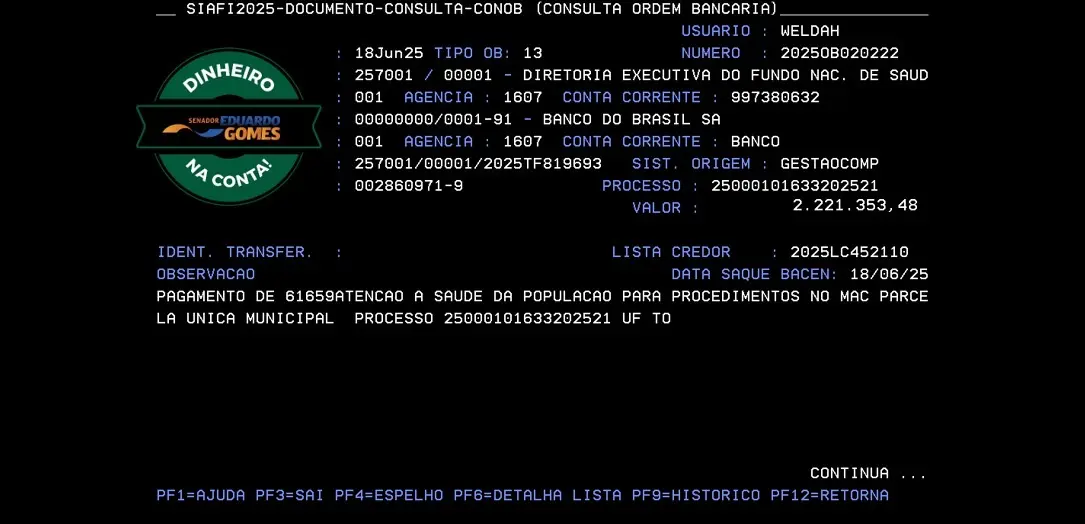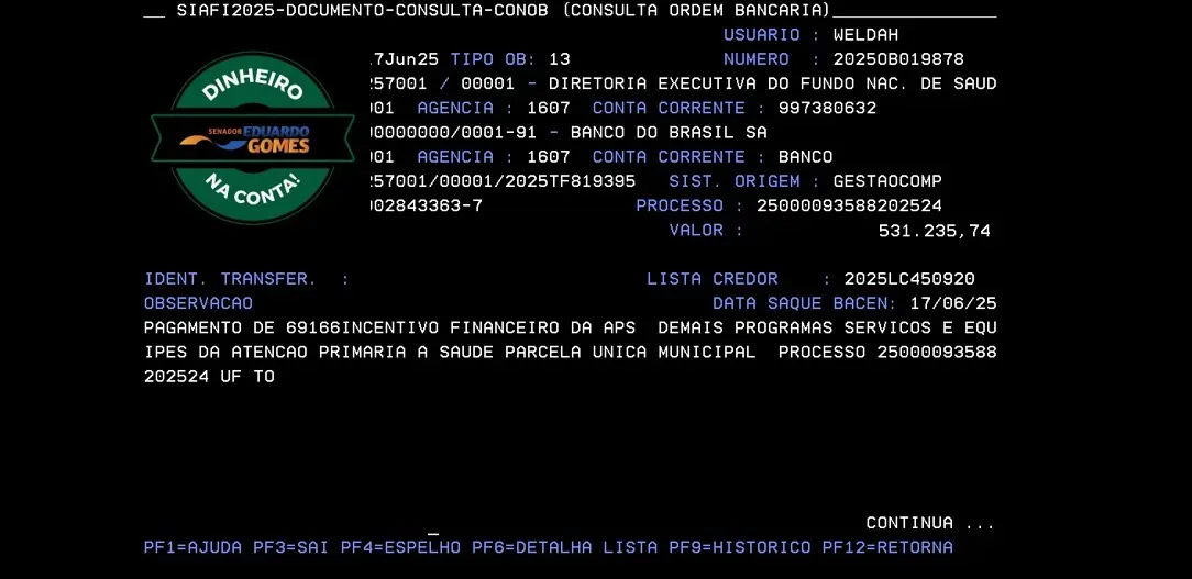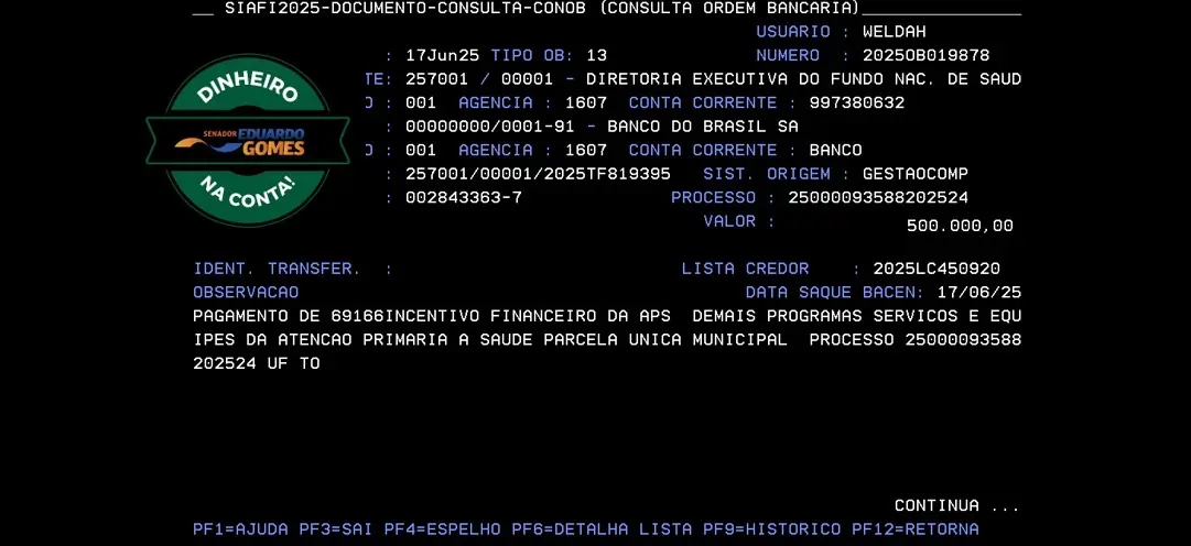 Para Sítio Novo foram R$ 588 mil, para Ananás R$ 531 mil e para Araguatins foram R$ 1,5 milhão.