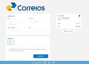 O site fraudulento utiliza os mesmos elementos visuais dos Correios. Ele solicita que a pessoa clique em um botão para liberar o pedido. Em seguida, a vítima é redirecionada para uma página de pagamento, onde é solicitado o valor de R$ 47,50 via PIX.