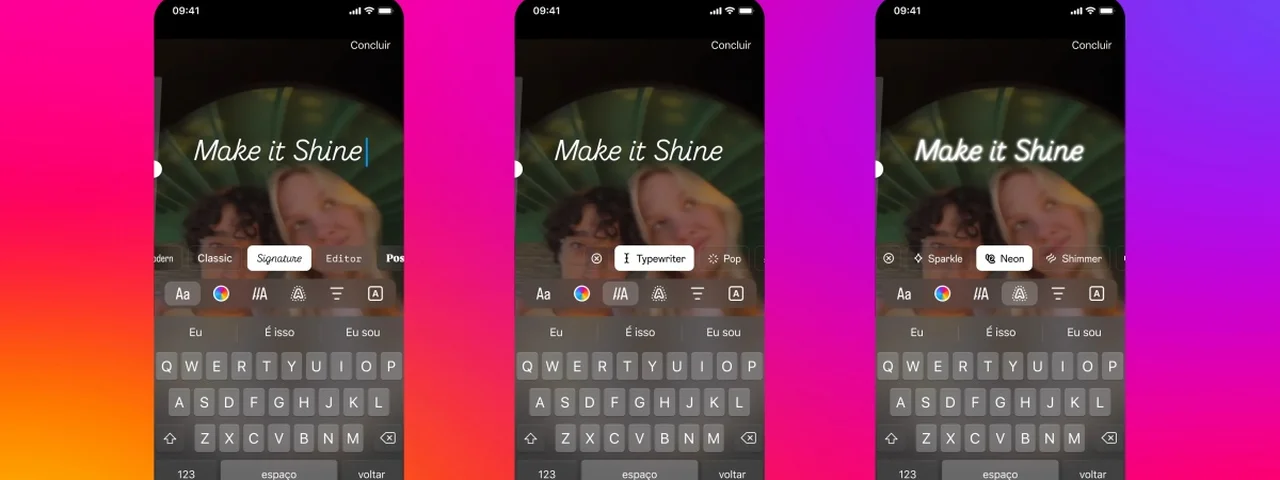 Contando com uma interface simplificada, a nova ferramenta de texto para Reels e Stories passa a ter mais opções de fontes, animações de texto e efeitos visuais. Basta tocar no botão de texto dentro dela para conferir as fontes recém-chegadas e aplicar animações e efeitos, de forma separada ou combinados, criando um estilo único.