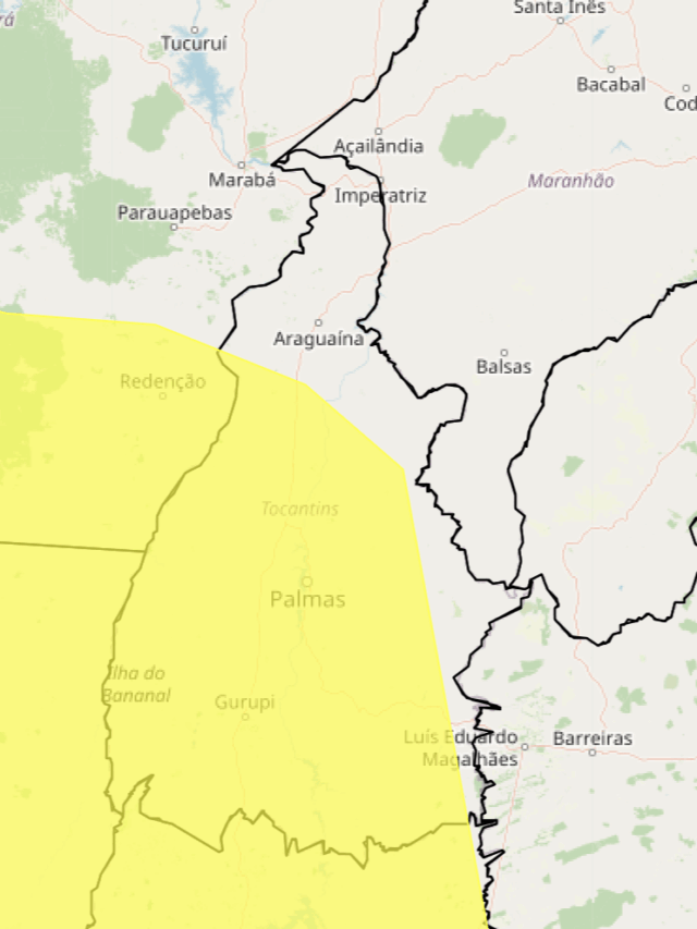 O Instituto Nacional de Meteorologia (Inmet) emitiu um alerta de tempestade válido até as 10h desta quarta-feira, 24, para quase todo o Tocantins. A previsão inclui chuvas entre 20 e 30 mm por hora ou até 50 mm por dia, além de ventos de 40 a 60 km/h e possibilidade de queda de granizo.