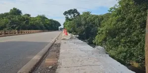 Segundo a PRF, devido ao acidente, parte da estrutura lateral da ponte na BR-153 foi danificada e precisou ser sinalizada com cones para garantir a segurança dos usuários, alertando os condutores sobre as condições da via.