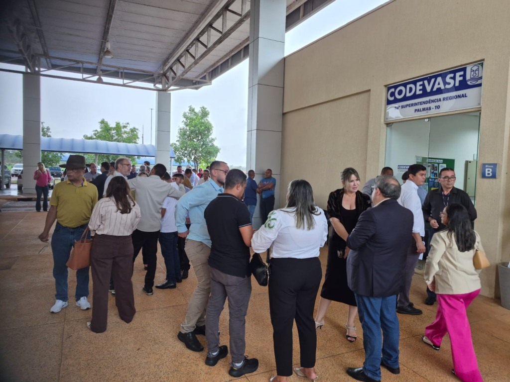 Lideranças aguardam o início do evento de entrega de maquinários e assinatura de contratos de pavimentação no valor total de R$ 20 milhões na manhã desta segunda-feira, 24, na superintendência da Codevasf.