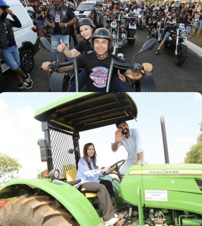 Em Araguaína ela andou de motos pelas ruas da cidade na garupa do prefeito Wagner Rodrigues, seu aliado. “Opa! Opa! Olha eu no MotoAra de Araguaína!Parabéns, prefeito @wagneraraguaina por esse evento incrível e super divertido!!”, disse.