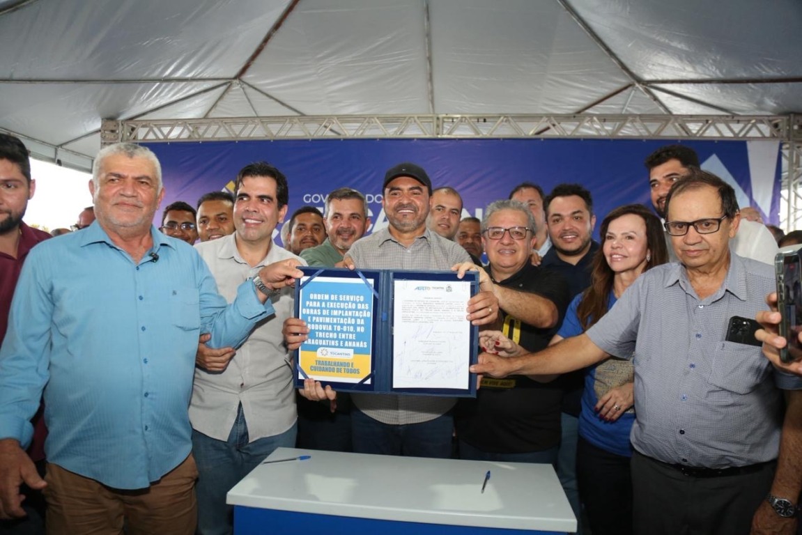 Obra muito aguardada pela população do Bico do Papagaio começa a sair do papel. A senadora Professora Dorinha (União), pré-candidata ao Governo do Tocantins, participou nesta quarta-feira (22) da assinatura da ordem de serviço para implantação e pavimentação da TO-010, no trecho que liga Araguatins a Ananás. O evento contou com a presença do governador Wanderlei Barbosa, do senador Eduardo Gomes, além de autoridades e lideranças locais.
