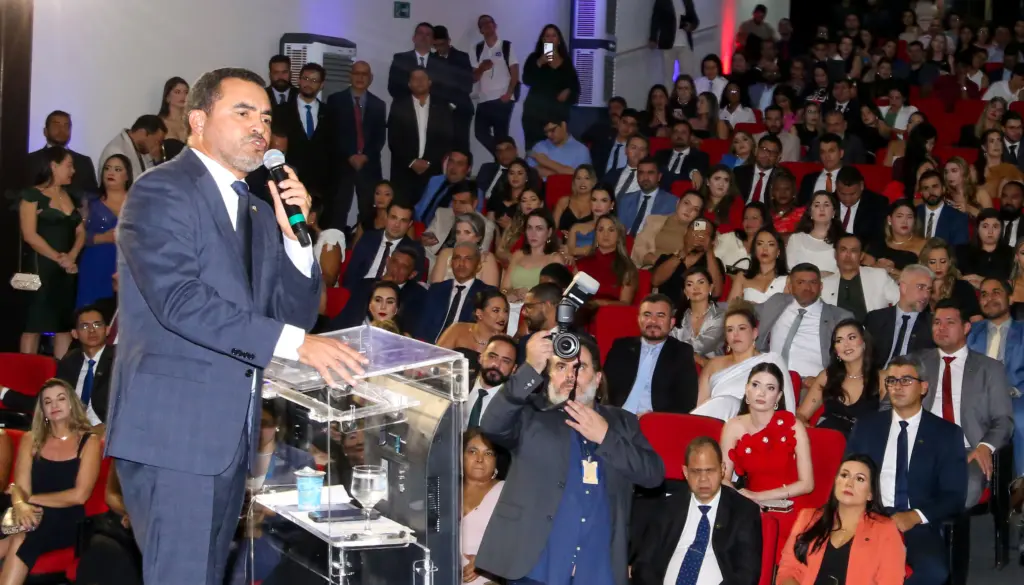 O governador do Tocantins, Wanderlei Barbosa, acompanhado da primeira-dama e secretária extraordinária de Participações Sociais, Karynne Sotero, participou nessa quinta-feira, 20, em Palmas, da solenidade de posse da nova gestão da Ordem dos Advogados do Brasil – Seccional Tocantins (OAB-TO) para o triênio 2025-2027. Na ocasião, tomaram posse o presidente Gedeon Pitaluga e a vice-presidente Larissa Carlos Rosenda.