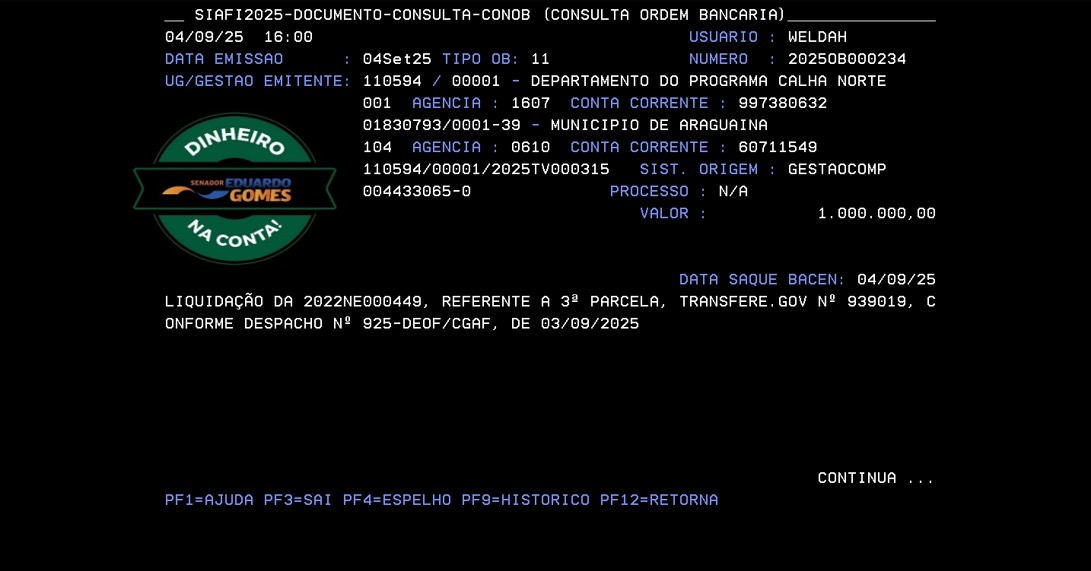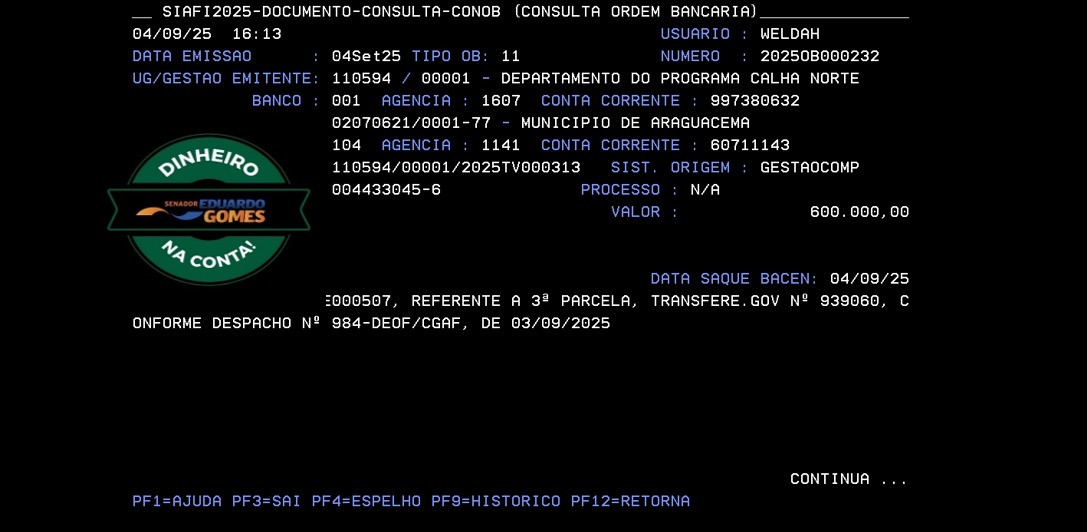O Programa Calha Norte liberou mais recursos para os municípios tocantinenses. Os valores foram destinados pelo senador e vice presidente do Senado, Eduardo Gomes, recordista de recursos para o Tocantins.