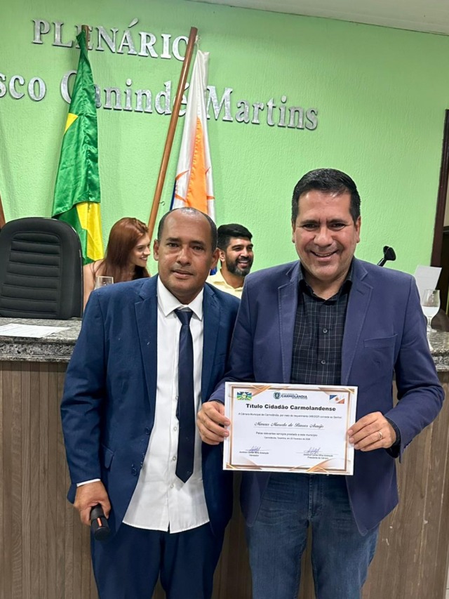 Durante as comemorações dos 35 anos de emancipação política de Carmolândia, neste final de semana, o deputado estadual Marcus Marcelo (PL) recebeu o título de cidadão carmolandense. A honraria foi entregue em sessão solene realizada na Câmara Municipal, reunindo autoridades, lideranças e a comunidade local.