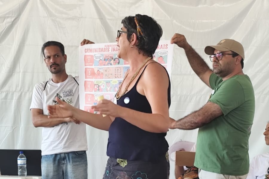A pauta da alimentação escolar desenvolvida pela Catrapovos Tocantins também recebeu espaço no evento. Silvana Bastos, do ISPN, conta sobre a relevância de programas de incentivo, como a Catrapovos, que vem avançando na implementação de políticas públicas, para o fortalecimento da bioeconomia e da alimentação saudável no Cerrado.