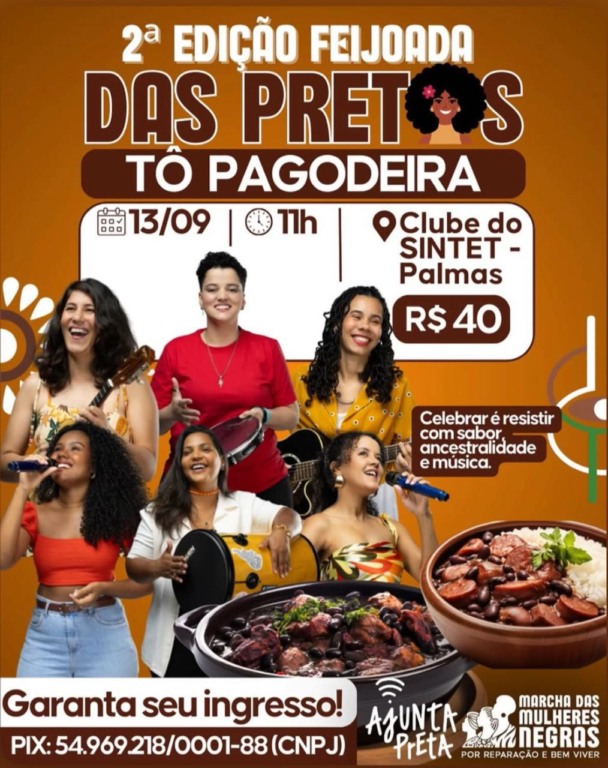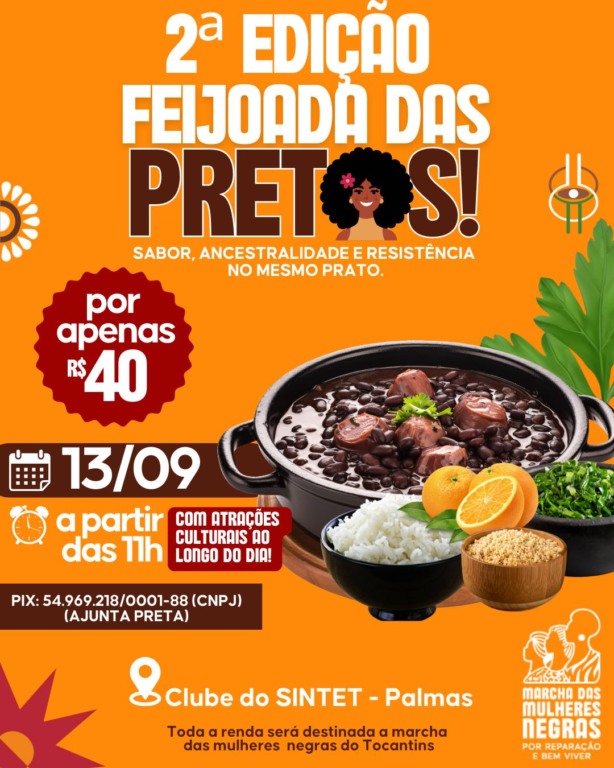 A 2ª Feijoada das Pretas é um convite para toda a comunidade: venha celebrar com sabor, música e ancestralidade, fortalecendo a luta das mulheres negras tocantinenses e brasileiras!
