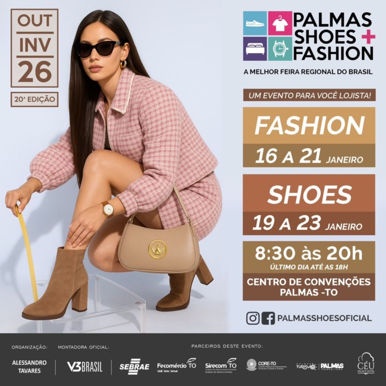 O organizador do evento, Alessandro Tavares, ressaltou a consolidação do Palmas Shoes + Fashion no cenário nacional e a expectativa positiva para esta edição. “O evento tem sido um sucesso e vem se consolidando como um dos grandes eventos do segmento em nível nacional. A expectativa é de que seja registrado um crescimento médio de 5% no volume de vendas em relação à edição de janeiro de 2025”, afirmou.