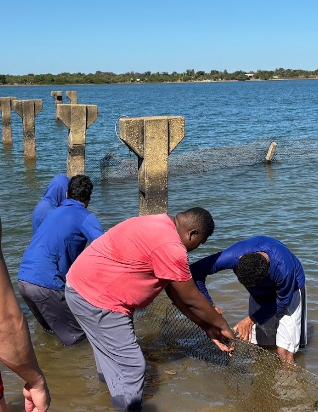 Já o primeiro-tenente da Marinha, Danillo Rodrigues, destacou o papel da instituição na ação. “A Marinha foi acionada para apoiar tecnicamente, principalmente quanto à segurança da navegação. Estamos com embarcações dando suporte à instalação das telas em parceria com o Corpo de Bombeiros”.