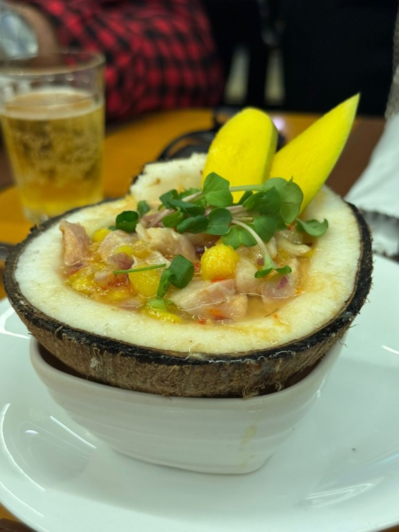 A chefe Rosa de Fogo elaborou um cardápio exclusivo para a noite de encontro da Febtur TO. Criou 3 entradas diferentes com ingredientes típicos da região. Foram também apresentadas 3 opções de prato. Um arroz cremoso com carne de sol, linguiça e pequi. Outro com filé de tucunaré empanado com acompanhamentos tocantinenses. E a terceira opção, um chambari ao molho elaborado com ingredientes do Cerrado. Sobremesas de dar água na boca completaram o jantar.