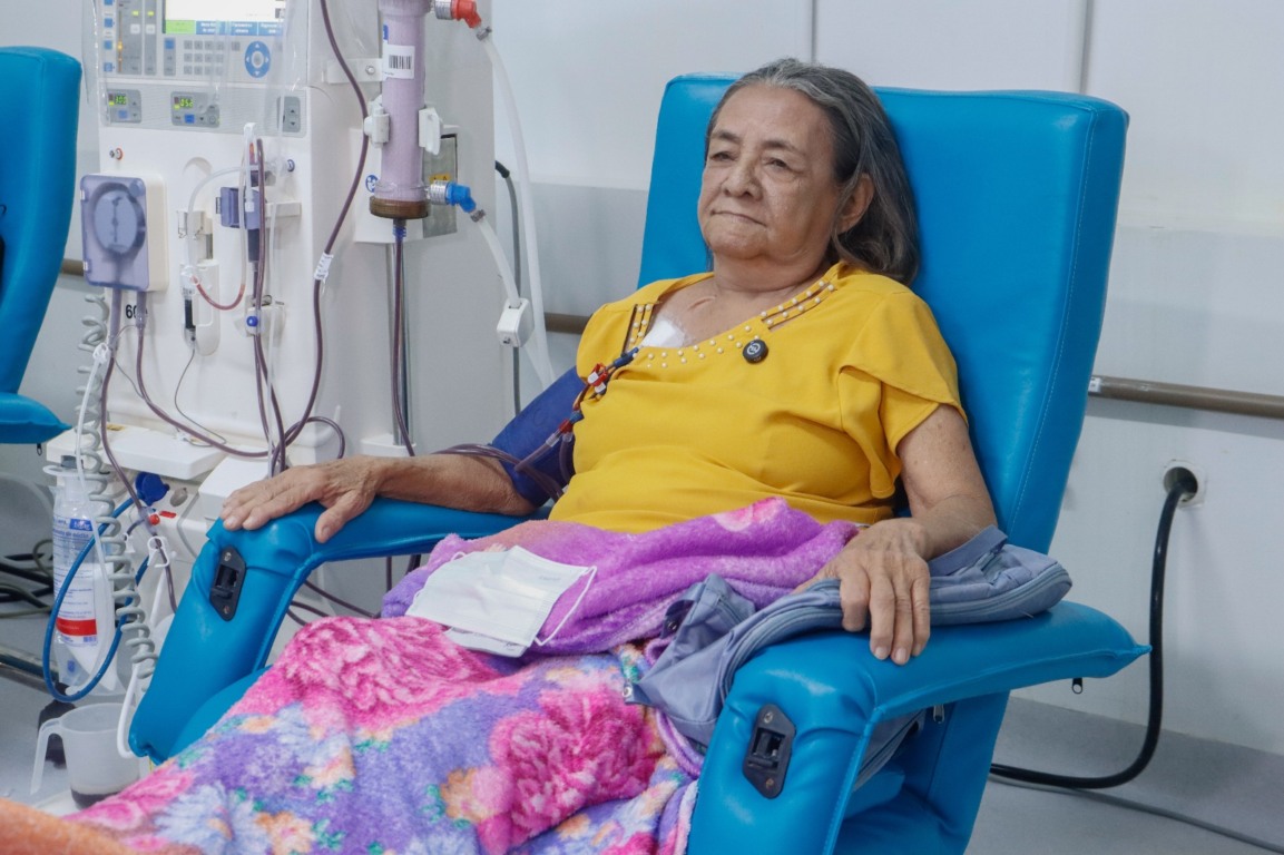 “Eu não aguentava fazer nada. Aí, depois que comecei a fazer hemodiálise, fui melhorando. Eu gosto muito do atendimento daqui”, revela dona Maria, que está prestes a completar dois anos de atendimento na instituição.