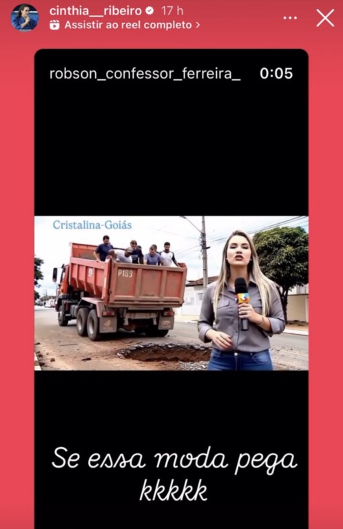“Vi um vídeo da ex prefeita dizendo que o gestor atual ia tapar o buraco da cidade e jogava o prefeito dentro e todos os vereadores, achei uma forma contraditória e desrespeitosa com a gente…. Que talvez em um passado não muito distante a ajudaram muito”, disse Folha. Cinthia postou nos stories um meme sobre o assunto e até o colega de partido se incomodou.