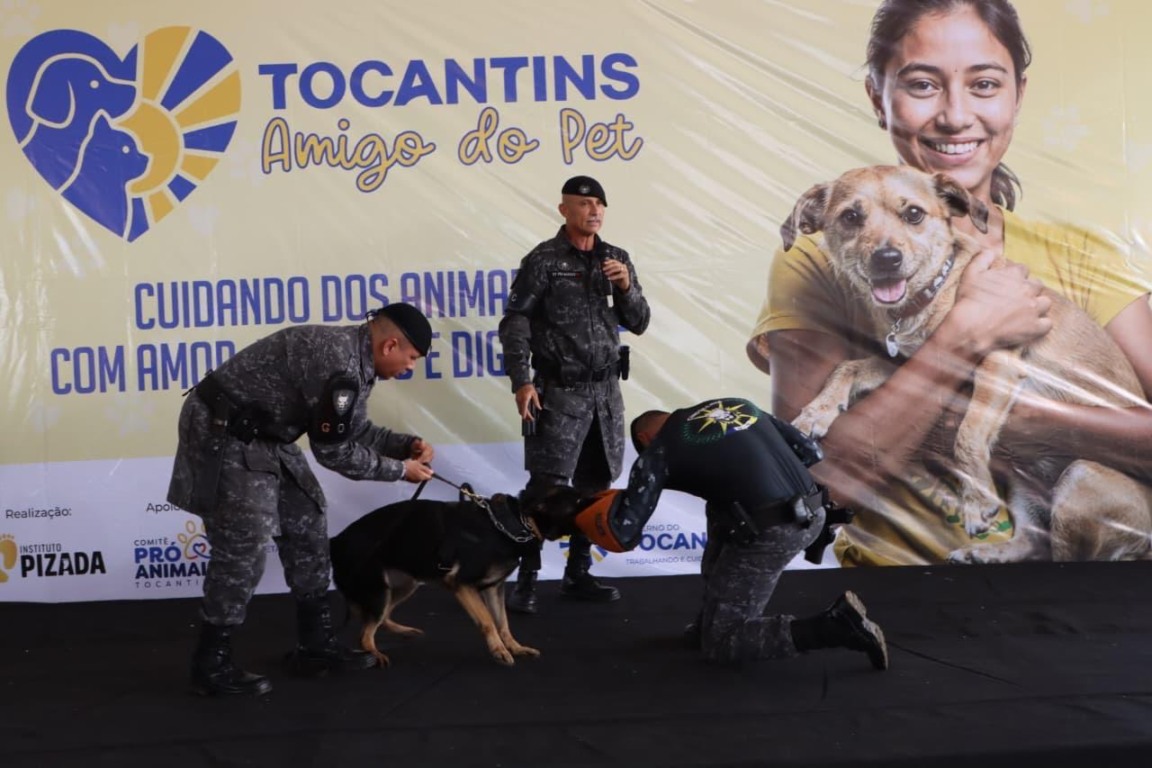 Durante a solenidade de abertura, o público acompanhou a apresentação do Grupo de Operações com Cães (GOC) da Polícia Militar do Tocantins (PMTO), que levou duas cadelas para demonstrar, na prática, a atuação desses animais em ocorrências, especialmente em operações de detecção de drogas e no apoio à detenção de infratores.