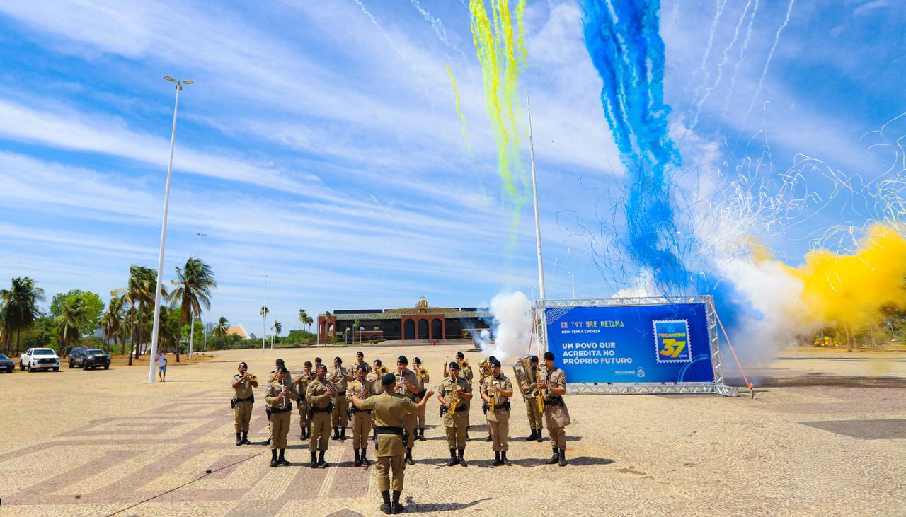 Além da execução dos hinos Nacional e do Tocantins pela Banda da Polícia Militar, com a participação do sanfoneiro Sebastião Braga e regência do tenente Timóteo, houve a apresentação do Grupo Tia Benvinda, da cidade de Natividade, que apresentou a Suça, um estilo musical que representa as raízes culturais do estado, refletindo sua história e identidade folclórica.