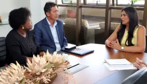 Secretário de Estado dos Povos Originários e Tradicionais (à esquerda), Paulo Xerente; primeira-dama Karynne Sotero (ao centro) e a secretária-executiva da Sepot (à direita), Cristiane Freitas