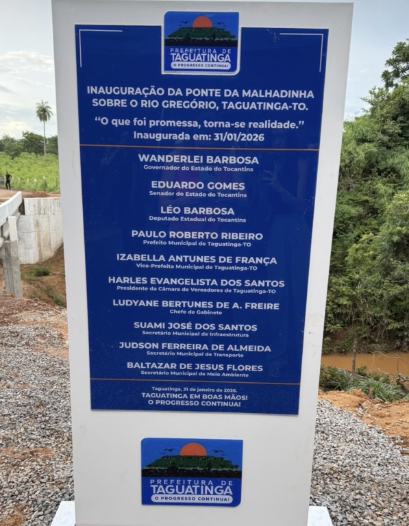 Viabilizada por meio de emenda, o recurso para construção da ponte foi do senador Eduardo Gomes, apontado pela gestão municipal como um dos grandes parceiros de Taguatinga . Em seu discurso, o prefeito agradeceu ao senador, ao Governo do Estado, ao deputado Léo Barbosa e a todos os parceiros que têm contribuído para fortalecer a infraestrutura da cidade.