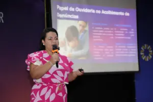 A ouvidora da SecMulher, Susan Milhomem Alonso, ressaltou a relevância da ouvidoria e dos canais de denúncia, explicando como esses mecanismos podem ser ferramentas cruciais para a denúncia e o apoio às vítimas de violência