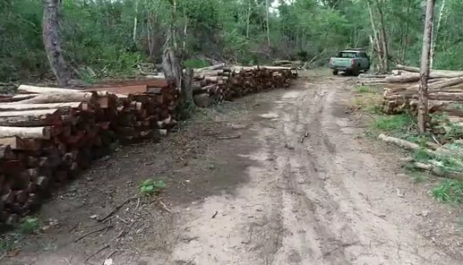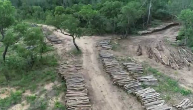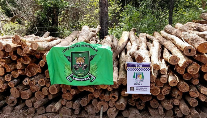 Através da fiscalização, foi constatado que havia 168m³ de produto florestal, entre estacas e mancos, oriundos de espécies como sucupira e peroba, onde 148m³ estavam em desacordo com as normas legais.